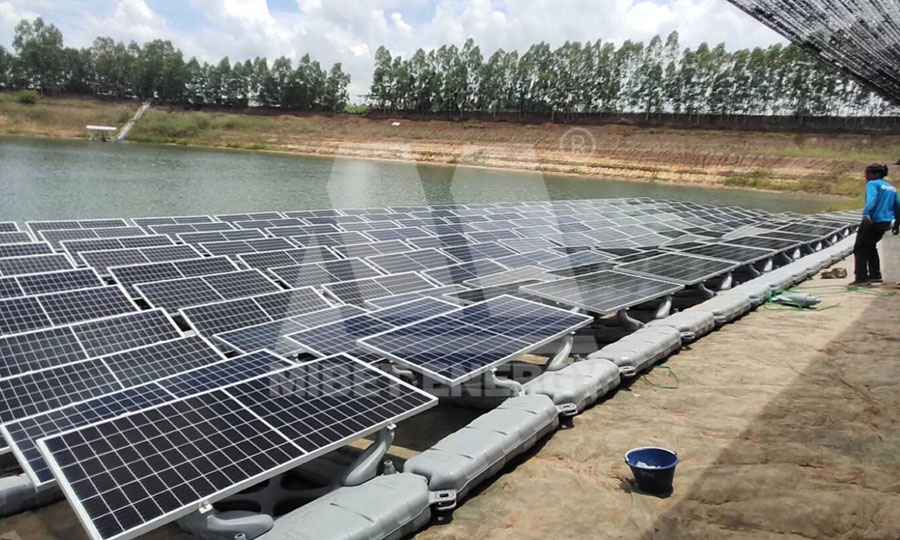 泰国水上漂浮光伏支架系统工程案例,装机量1.5MW。项目位于泰国首都曼谷的东北部,水域面积约2万平方米,年发电量达228万度,每年可减少大约200吨的二氧化碳排放量。