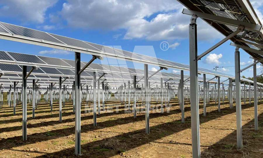 该电站采用亚博YABO自主研发的“农光互补支架系统”——一款将光伏支架系统与农业种植大棚完美融合的产品。该系统已经通过TUV专业测试并取得相应报告,主体为铝合金材质,按照大跨距结构进行设计,丝毫不影响农业机械设备的日常操作。立柱可根据项目需求选用合适的方管,多种方管无缝切换,在大跨距结构下仍然拥有出色的承重性能。具有独家专利的T型卡槽,搭配立柱、接头、后斜拉撑,可实现大棚支架的灵活调整,有效减少施工队的安装时间。